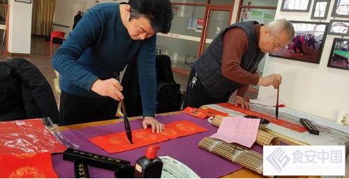 山东聊城市直书画家协会到御苑社区为居民写春联、送福字