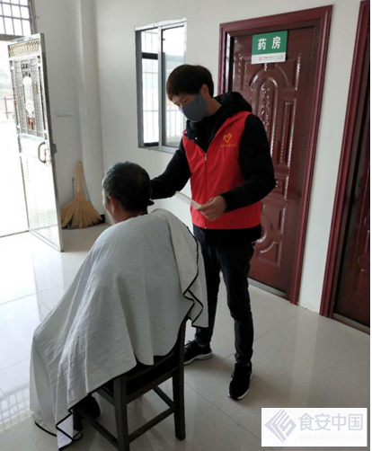 图五:志愿者帮老人义务理发。