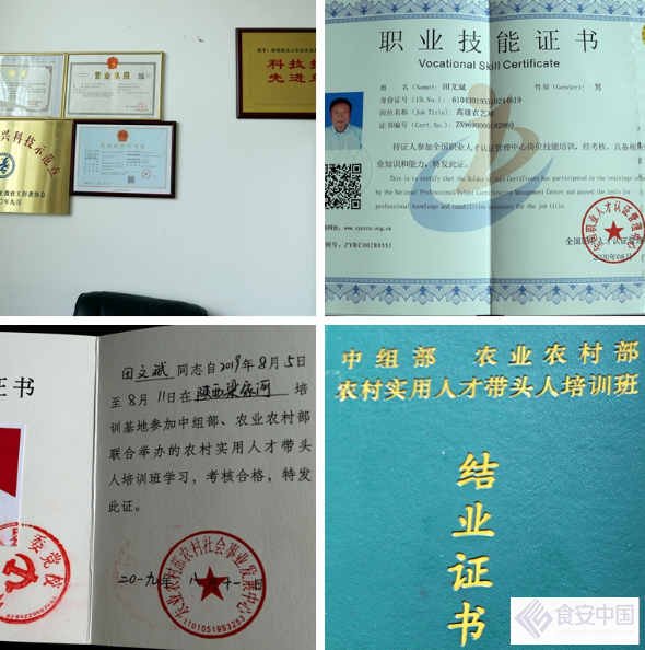 陕西虎龙山生态农林发展有限公司2020年被陕西省老科学协会命名为《助力乡村振兴科技示范点》,公司现在拥有120多亩育苗基地,200多亩育种基地,2900多亩地生态山林和一个养殖场。在交谈中,我们看到两本证书,一本是《高级农艺师》的证书,另一本是中组部和农业农村部2019年颁发的《农业实用人才带头人培训班结业证书》。
