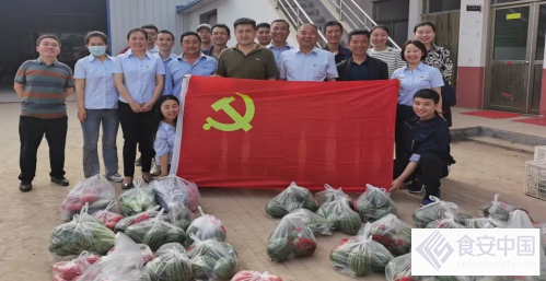 在村合作社大院里,谭庄村支部书记向党员们介绍了村里生产发展情况和现实需求,并推荐了村里自产的西瓜、西红柿、上海青等农产品。党员志愿者们纷纷为同事、亲朋好友进行代购,先后助力销售各类农产品1200余斤。