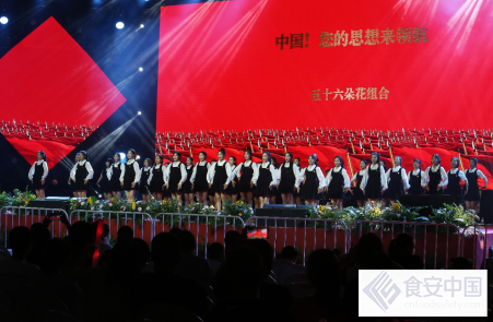 被誉为“红歌天团”的五十六朵花少女组合朝气蓬勃的演绎,耳目一新,催人奋进的歌舞获得了全场的阵阵掌声。五十六朵花少女组合是寓意着全国56个民族团结一心永远跟党走的大型歌舞组合,作为曾在北京人民大会堂举办过专场万人演唱会的演唱组合,用充满爱党爱国激情的作品和演出,赢得了广大群众的认可。据悉,该演出阵容自2015年首演成功以后,被社会誉为“社会主义文艺的最美风景线”。