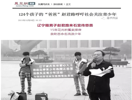 从1998年始,赵君路求救助流浪少年人,15年的时间里,先后救助、收养过124个孩子,为了这些孩子,他不仅错过了婚姻,还卖掉了房子,花光了积蓄。不幸的是,长期劳累和经济拮据,赵君路罹患了糖尿病,由于未能得到及时、有效治疗,病情逐渐恶化,双腿开始红肿、破溃。赵君路不得不四处求医,从辽宁丹东到沈阳,他寻遍大大小小的医院,但所有的医院都无能为力,因为赵君路的血管长期受到血糖毒性的影响,患处血流不畅已造成局部皮肤溃破,传统疗法根本无法解决感染并发症。https://v.qq.com/x/page/j08484g494e.html