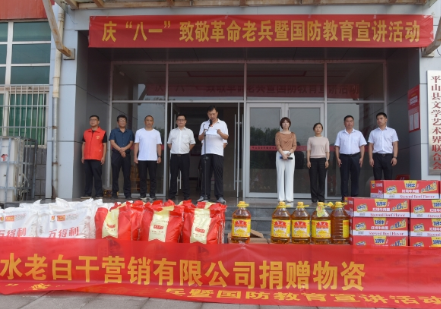 平山县和爱协会康健会长代表全体志愿者向革命老兵、现役军人及退役军人致以深深的敬意!并衷心感谢衡水老白干营销公司及平山福家商贸有限公司梁明江总经理长期以来对和爱协会公益活动的大力支持。