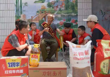启动仪式结束后,和爱协会志愿者和福家商贸公司员工分为五组,同时行动,驱车赶往9个乡镇,18个村庄的老兵家中,为18名革命老兵(含南滚龙沟王二小儿时伙伴,参加过2015年九三大阅兵,受到总书记亲切接见的史林山老人)献上了节日的祝福,并捐赠了由衡水老白干营销公司提供的鲁花花生油、大米、面粉、香油、方便面、刀削面片等爱心物资。