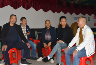 图:杨显富(右一)等乡友在社区了解老年人生活情况