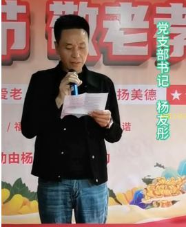 南隆街道办事处太洪社区杨友彤在担任党支部书记十多年以来,特别关心本社区老年人的生活,为他们创造更加美好的生活环境,让每一位老年人都能享受到社会发展的成果,从2014年重阳节开始,社区每年都举行庆祝活动,全体老年人相聚一起,表彰“孝亲敬老”模范家庭,为高龄老人发红包,观看文艺表演,做坝坝宴,到今年重阳节,已经连续举办十年,特别是2015年重阳节办了60桌坝坝宴招待社区中老年人。杨显富更是热爱老年工作,知道社区开展这么大的活动资金短缺,每年不仅大笔捐款,还亲自从成都回到现场参加,为老人送祝福,有时还登台献歌,这种捐资公益,他已经连续坚持了十年,少说也有30多万元,摄影老师对每次活动均作了摄录与报道。