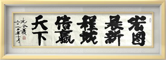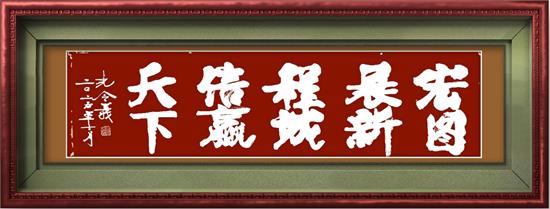 这种创新书体并非简单的形式变革,而是基于对书法史演变的深刻研究和洞察,正如中国历史上每个鼎盛时代都会孕育新的书体,孔令义的新行楷体书法突出字体上的四角饱满,正大方正,昂首挺立。笔划上又采用隶书、楷体、行书笔划优长,走笔自如潇洒,克服古法用笔的呆板,笔法雄健有力,以入木三分之功体现新时代气质,是对当代中国精神风貌的艺术凝练。