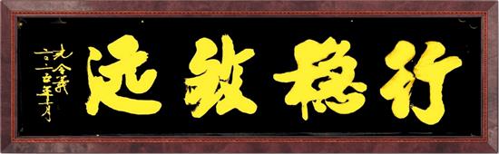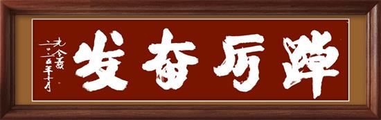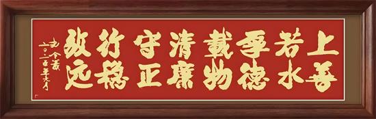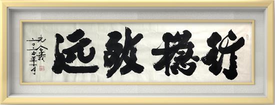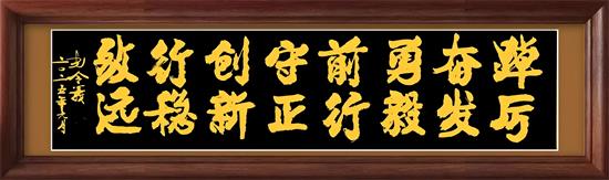 这种对汉字本真的守护,源于他对书法与传统文化的深刻认知,深信只有书法才是文化的忠实记录者,而新行楷体正是以笔墨续写了中华文明的新篇章。其作品中诸如《踔厉奋发 勇毅前行 守正创新 行稳致远》、《上善若水 厚德载物 清廉守正 行稳致远》、《勇毅前行》、《勇往直前》、《行稳致远》《笃行致远》、《福蕴华堂》、《百福具臻》等作品既延续了传统书法的筋骨神韵,通过墨色浓淡与线条刚柔的对比,传递出新时代的强大力量和文化自信,履行着新时代书法家应为时代而作为时代而歌的艺术担当。