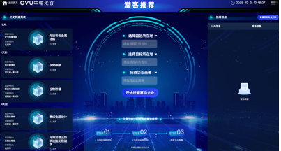 集团以AI与大数据为核心,从多元客户需求出发,构建起数字化的产业生态体系,驱动园区从被动空间提供者向主动价值引擎跃迁。OVU园区操作系统整合产业大数据,驱动跨区域协同招商,通过AI智能匹配与管理,实现客户追踪、合同签约一体化,借助OVU招商网在线选址,全面提升招商效率和成果转化。