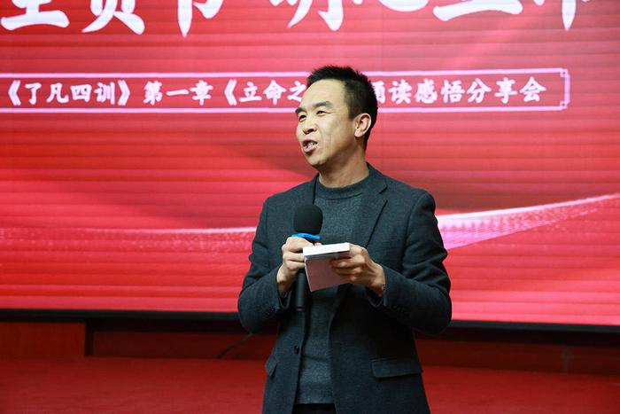 诵读结束后,活动进入了分享环节。焦安国老师首先上台,他结合自身经验,深刻阐述了“立命”与“塑造心相”的智慧在现代工作中的应用,为与会者提供了宝贵的启示。