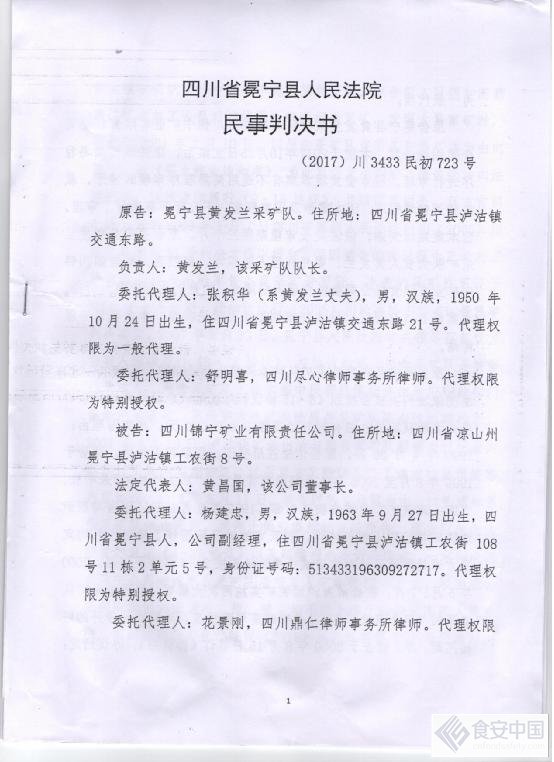 黄发兰向记者介绍在一审期间我向法院提交了营业执照、采矿许可证、1999年协议书等对黄发兰采矿队主张的确证,但冕宁县人民法院故意做出了枉法的723号判决:驳回冕宁县黄发兰采矿队诉讼请求。