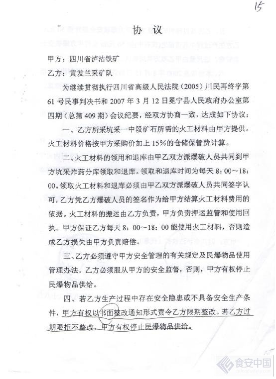 黄发兰一边和记者踏勘现场一边气愤的说:2017年10月我向四川省冕宁县人民法院提起对四川锦宁矿业有限责任公司合同纠纷之诉,并提出诉讼请求和事实理由:原告冕宁县黄发兰采矿队向本院提出诉讼请求:1、请求人民法院依法判决被告按照《815协议》对坑采一中段尚存的剩余矿产资源所获取的收益金额补偿原告8000000元。事实与理由1999年4月20日,原告依法注册登记,领取营业执照。原告于1999年8月至2006年4月期间拥有冕宁县“回头湾铁矿”采矿权。“回头湾铁矿”与被告铁矿相邻,1999年8月9日,原告与原泸铁矿签订矿山相邻协议,对双方的矿区范围作了确定,并约定双方谁越界开采给对方造成损失,必须按2-3倍给予赔偿。2000年5月、7月,被告前身泸沽铁矿实施两次大爆破,将原告采矿队名下的“回头湾铁矿”1号井矿洞震塌而报废,为解决一号井的赔偿题,原、被告于2000年8月15日签订《协议书》,协议约定泸沽铁矿将坑采一中段井下交由原告开采,原告投入巨额和高薪聘请技术施工人员对该坑采一中段掘进采矿,发现大量富矿时被告于2001年2月10日,以原告采矿队盗采其6号矿体为由向原告发出《停止作业通知书》。为此双方发生纠纷,原告依法向法院起诉,诉请继续履行《815协议》,并赔偿其损失。双方官司不断,直到2006年7月7日四川省高级人民法院作出(2005)川民再终字第61号判决才得以和。但因被告的虛假报告及政府原因行政不作为不给原告办理采矿许可证,原告的采矿许可证于2006年4月到期。就如何执行(2005)川民再终字第61号民事判决事宜,2007年3月13日,冕宁县人民政府有关领导召集双方当事人继续履行《815协议》,按协议约定,原告采矿队是被告的承包人,原告采矿队工程实施中所需民爆物资由政府职能部门供给泸铁矿,再由泸沽铁矿供给原告采矿队等会议纪要内容。2007年4月19日,泸沽铁矿派出所与原告采矿队根据会议纪要内容签订了具体实施协议,过后双方又陆续签订了爆破物品供给等内容协议。2013年5月11日,被告以雅安地震为由,口头通知原告采矿队停止开采,并停止供应爆炸物资给原告。原告以此向法院提起解除《8・15协议》以及赔偿损失等诉讼请求一审判决被告锦宁公司支付原告采矿队看守工人劳务费57600元,驳回原告采矿队其他诉讼请求。原、被告均不服上诉于四川省高级人民法院,四川省高级人民法院以(2015)川民终字第912号民事判决撤销一审判决,解除原、被告之间于2000年8月15日签订的《协议书》,原告不服依法向最高人民法院申请再审,最高人民法院经书面审査后作出(2016)最高法民申1187号民事裁定书,认定为《8・15协议》客观上已无法继续履行,采矿队要求解除《8・15协议》已经得到二审判决的支持。由于《815协议》为双方签订的补偿协议,采矿队按照《8.15协议》约定的履行方式对锦宁公司所属的坑采一中段的资源开采完毕即为补偿到位。但因采矿队并未能举证证明坑采一中段尚存的剩余价值以及应当获取的收益金额,二审认定本案难以对《8.15协议》解除后的补偿问题作出处理,有事实依据。所以,二审认定合同解除后的权利、义务清结问题,由采矿队根据《8.15协议》约定另行向锦宁公司主张权利,并无不当。综上案件事实,原告是被告实施的爆破侵权行为将原告名下的“回头湾铁矿”1号井洞震塌而报废,原、被告双方平等自愿达成《8.15协议》,由侵权之变为合同之债。在双方履行《8.15协议》过程中,因被告发现交由原告开采的坑采一中段出富矿,为此被告想方设法阻止原告继续开采坑采一中段矿产资源而引起系列官司,最终由法院判决解除双方签订的《8.15协议》,但法律还未解决的就是坑采一中段尚存剩余矿产资源收益金额。目前坑采一中段剩余矿产资源净收益额超亿元,原告主动放弃大部分权益,仅向被告主张8000000元的补偿费。敬请贵院依法查清事实,支持原告的诉讼请求为谢。被告四川锦宁矿业有限责任公司辩称