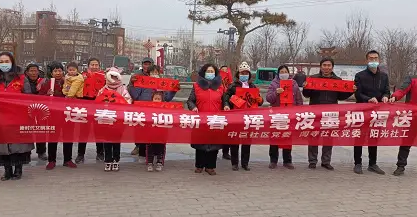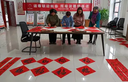 山东聊城市直书画家协会女书画家分会为基层群众写春联送福字
