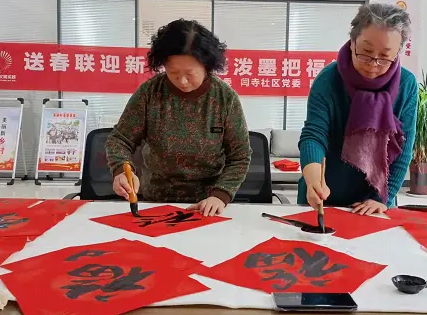 山东新闻网:(许文清)2022年1月21日下午,山东省聊城市直书画家协会女书画家分会不管严寒也不顾几天来的劳顿,联合中巨社区党委走进闫寺社区开展了为基层群众写春联,送福字活动。