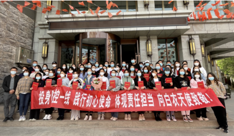 (中国众识网甘肃站讯)春深景明之际,兰州疫情经过四十多天的奋战,终于迎来社会面全部清零的骄人战绩。奋战在抗疫一线的医务人员,陆续回归各自的医院。4月27日中午,兰州瑞京糖尿病医院主动请缨出战的刘云瑞、张玉婷等十名优秀的医护工作者,在顺利完成长达43天的支援七里河区核酸采样工作后凯旋而归。受到了兰州瑞京糖尿病医院各科室领导代表的隆重欢迎。
