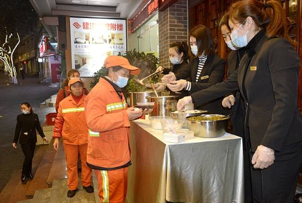 “被称为‘城市美容师’的环卫工人,寒来暑往,辛勤工作为我们营造一个良好的环境,特别是疫情防控最关键的时期,她们一直坚守在岗位,非常辛苦!”正在参加“两会”的重庆市涪陵区政协委员、民建涪陵区委荔枝支部副主委、重庆市舒美餐饮有限公司董事长舒金奎说:“每年腊八节,都为环卫工人赠送腊八粥表达敬意,已经有近十年,在我们的员工心里,早已将腊八节当成了感恩节。作为民营企业应该为此承担起应有的担当和责任,尽微薄之力为环卫工人带来温暖。”