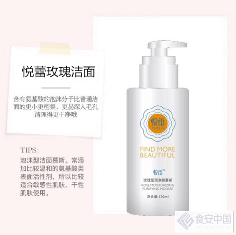 控油清洁洗面奶推荐 >>> 悦蕾玫瑰莹润净颜慕斯 128RMB/120ML