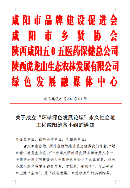 为了进一步加快咸阳绿色发展步伐,7月2日,由咸阳市品牌建设促进会、咸阳市乡贤协会、咸阳五0五医药保健总公司、陕西虎龙山生态农林发展有限公司、绿色发展融媒体中心五家单位联合申请的“环球绿色发展论坛”永久性会址工程咸阳筹备小组成立会议在咸阳五0五集团召开,各单位主要负责人参加。