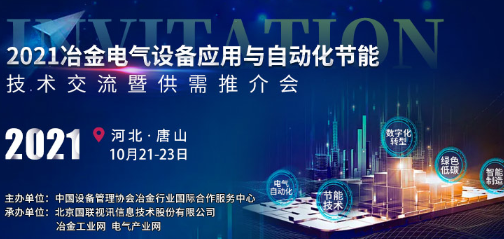 冶金工业在我国的经济体系中占据着重要的地位,随着冶金产业低碳绿色发展和智能制造的高度提升,电气自动化技术应用促使冶金产业能效升级。由中国设备管理协会冶金行业国际合作服务中心主办,国联股份、冶金工业网和电气产业网承办的“2021冶金电气设备应用与自动化节能技术交流暨供需推介会”,于2021年10月21日-23日在河北·唐山举行,以“探索钢铁、有色金属等冶金电气设备运维管理及电气自动化节能技术发展”为主题,助推钢铁、有色金属等冶金行业智能制造、低碳绿色的高质量发展。