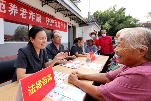 9月12日,山东省枣庄市市中区人民法院法官在孟庄镇大郭庄村为老年人提供有关养老诈骗方面的法律咨询。(吉 喆 杨青洲)