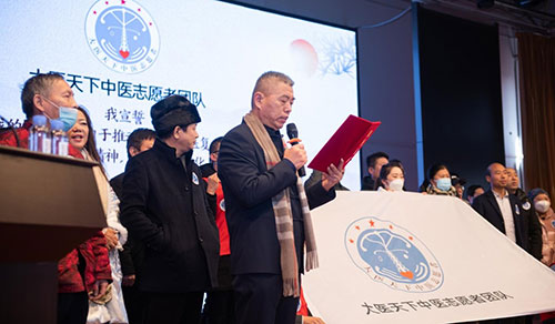 活动现场,在大医天下志愿者团队发起人刘体旷的带领下,40名志愿者共同宣誓,我愿用我的余生,致力于推动百年大中医复兴公益事业,弘扬中医文化,践行大医精神的宏亮口号声中把气氛推向高潮。