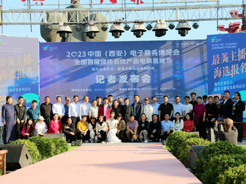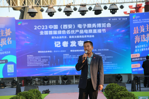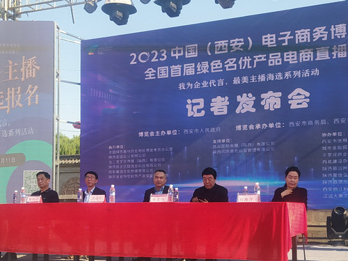 6月5日下午,2023中国(西安)电子商务博览会全国首届绿色名优产品电商直播节“我为企业代言最美主播海选”系列活动新闻发布会暨启动大会在西安汉城大集文化街区举行。