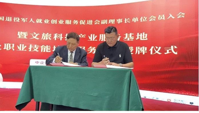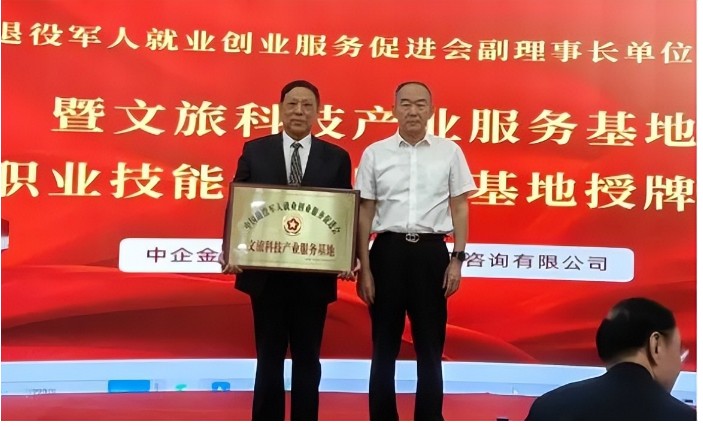 2025年5月12日下午,中国退役军人就业创业服务促进会在北京举行副理事长单位会员入会暨文旅科技产业服务基地与职业技能培训服务基地授牌仪式。促进会理事长王义,秘书长朱洪光,最高人民检察院老干部局原局长何全印,环境保护部办公厅纪检组原组长程宝忠,国务院发展研究中心新农村规划研究中心主任李杰,全国供销合作总社财务司原副司长何海龙,北京市旅游发展委员会原主任于德斌、原副主任熊玉梅,国家税务总局北京市税务局原副局长王勇生、石家庄市税务稽查局副局长姜伟、廊坊市税务局张建芳副局长,《领导者》周刊原主编裴力,北京多元调解中心原副主任薛茂林,全国工商联旅游业商会秘书长武国梁,中国农产品流通经纪人协会原秘书长何海龙,华侨茶叶发展研究基金会理事长邵曙光,中国民营科技促进会常务副会长杨辉等领导、企业界代表及公益组织负责人等近百位嘉宾参加仪式。