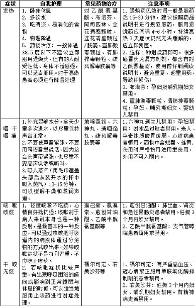 表1 新冠病毒感染者居家治疗常用药及注意事项参考表