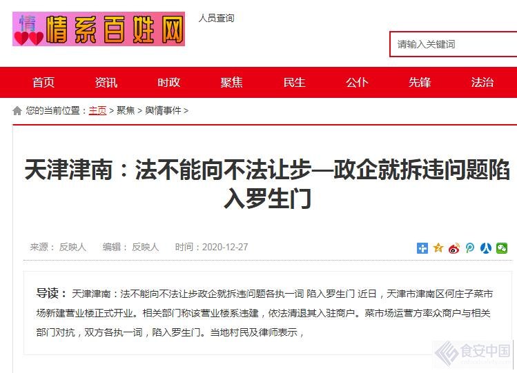 近日,天津市津南区何庄子菜市场新建营业楼正式开业。相关部门称该营业楼系违建,依法清退其入驻商户。菜市场运营方率众商户与相关部门对抗,双方各执一词,陷入“罗生门”。当地村民及律师表示,支持政府依法执法,“法不能向不法让步”。