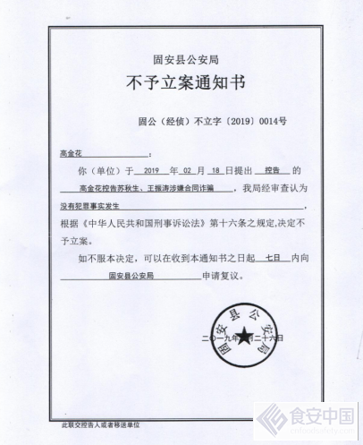 就高玉伟、苏秋生涉嫌犯罪问题,高金花向固安县公安局申请立案也得不到支持。