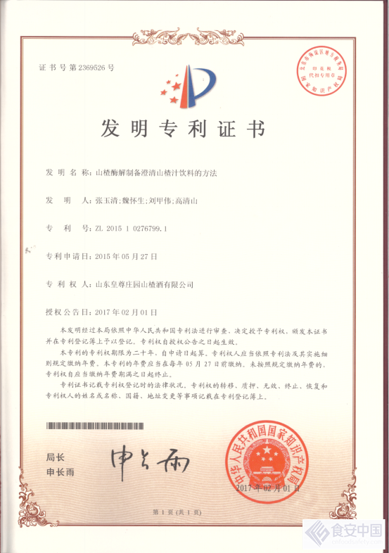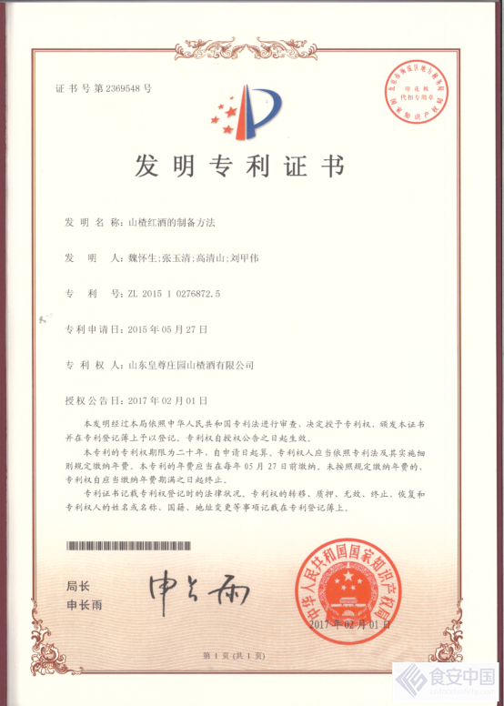 皇尊庄园自成立以来,广纳人才,组建了一支高技术水平的研发团队,建有市级重点实验室一座,获得国家发明专利三项。在山楂干红的酿造过程中最大程度的保留了山楂的营养成分,并产生了一种特殊的营养物质-“半乳糖醛酸”。经食品药品监督管理局检测,皇尊庄园酿造的山楂干红,黄酮含量更是高达3000mg/L,黄酮具有清除自由基,平衡三高,缓解痛风的功效。