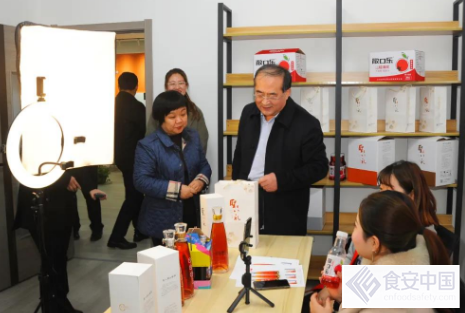 在潍坊工程职业学院电商直播实训基地,山东皇尊庄园山楂酒有限公司的“圣八礼”山楂酒和“敞口乐”山楂汁引起了潍坊市副市长马清民和青州市委副书记、代市长宋伟伟等领导的关注,在经过现场的工作人员的详细介绍后,各领导对皇尊庄园的的山楂酒和山楂汁饮料,以及先进的酿制工艺赞不绝口。