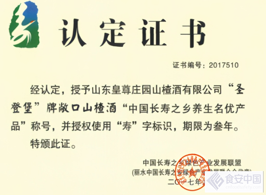 以青州敞口山楂为原料酿造的圣八礼山楂酒,酒行业中国唯一的“中国长寿之乡养生名优”产品,风筝都国际联合会指定用酒。