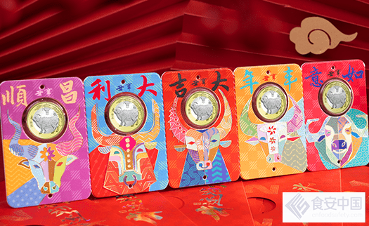 五福之如意、丰年、大吉、大利、昌顺贺岁牛装帧币(五枚装)则更非传统意义上的复古中国风,而是设计工业风和中国传统元素的融合,从科技化的物感品质出发,走向中国传统乡土的物感呈现,形成另一种特色鲜明的造型风格。在创作手法上参考了唐代名画家韩滉的传世名作《五牛图》,经过全新设计构思,虽然是超现实的几何线条造型,采用超现实立体手法,将名画的神髓展现在我们面前,装帧币上的五牛,亦如《五牛图》上的五牛,各具形态和性情。大吉装帧币是幸福温暖的红色;大利装帧币是高远深邃的蓝色;丰年装帧币是辉煌华丽的橙色;如意装帧币是青春平和的绿色;昌顺装帧币是高贵优美的紫色,不同的主色块与不同主题完美契合,设计师通过不同的色块,象征了能够带来五福临门、十全十美的生命力量,透露出清晰睿智的东方哲思和顺应天道的大智慧,无法被复制的文化物感美在设计中呈现出来。这就很有意思,它的内涵是古典的、乡土的,又充满了现代性,它开阖随意、随物赋形,传承千年的五福文化内涵和经典名画都被纳入到现代框架里,古典文化被重新定义和呈现了出来。