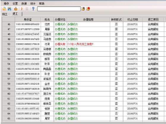退工登记