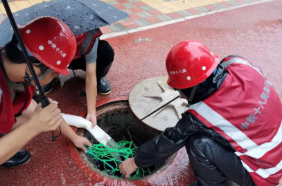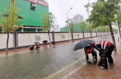 勠力同心,处置内涝。台风暴雨来临前,河北项目群对暴雨可能引发内涝高度警惕,提前备足相关应急抢险物资、设备,安排好应急队伍,对项目部周边道路排水系统根据“预防为主、防治结合”的方针,“勤排查、早发现、有预防、重处置”的原则,形成闭环管理。各项目部仔细检查,及时清除沟渠“血管”淤塞,打通排水“脉络”,确保项目部周边道路边沟排水流畅。暴雨期间,由于降水量过大,汇程国际项目部施工人员冒雨打开道路沿线下水口、雨水箅子,对堵塞排水系统的落叶断枝杂物、垃圾进行清理清掏,解决因暴雨水道口堵塞的难题,保障排水沟通畅。另外对项目部周边道路路面、人行道、交叉道口等因雨水冲刷而积存的泥沙、垃圾、树木断枝落叶等杂物及时进行清扫,全面清除路障,保障路面安全。