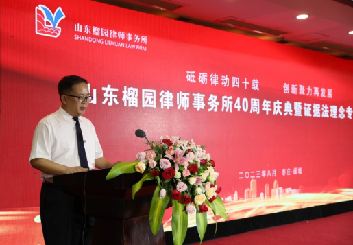 2023年8月12日上午,山东榴园律师事务所在峄城区峄州大酒店会议中心成功举办40周年庆典暨证据法理念专题论坛活动。