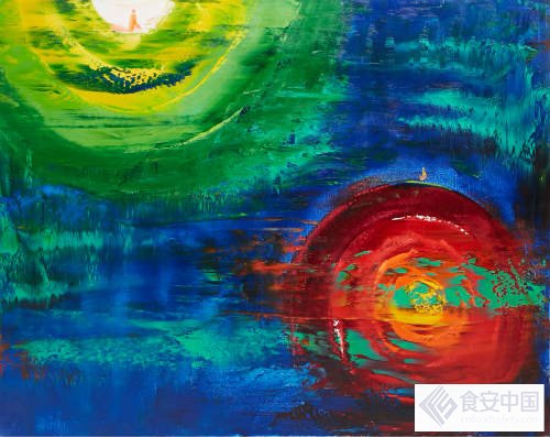 《金刚经》说,“云何应住,云何降伏其心?”观永觉法师之禅画,无处不体现对于“心”的思考。他的作品在内容题材上,大都选择与佛教相关的内容,或是罗汉身影,或是梵境欢歌;在表达方式上,既有西方的抽象思维,又有东方的意境观感;在结构布局上,既大气磅礴,又细致精微;在色彩运用上,既色彩绚烂,又层次清晰。对艺术家的主观印象往往从客观表达中得以呈现,永觉法师的作品正是从内容题材、表达方式、结构布局、色彩运用等多个维度带给了人们对作品的人文思考。禅画直面人心、扣人心弦,在看似狂放中蕴含着寂静,引发了我们对生命意义的思考。每个人如何从自我的内心追求心灵的回归,什么是真正意义上的真如,我们生命的种子在哪里,这才是禅师作品中所要表达的主题。