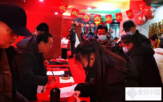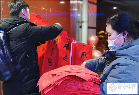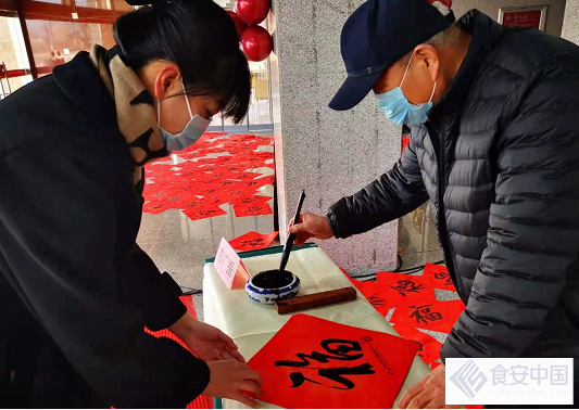 幅幅散发着清新墨香的喜庆大红春联即时展现在眼前。市民,员工们一边欣赏着漂亮的书法,一边忙着晾晒油墨未干的春联,整个现场洋溢着新春祥和的气息,满满的春联倾刻就被热情的观众“一抢而空”。馥郁的墨香在“中国红”的纸张上萦绕,浓浓的年味在此处提前映现!