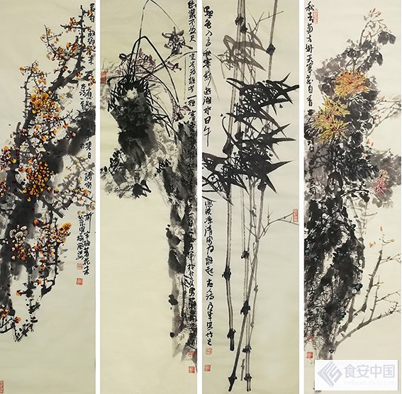 四君子/梅兰竹菊:34cm×138cm×4
