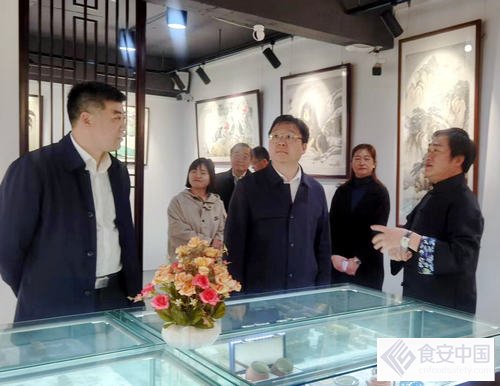 中国健康新闻网讯(记者 许顺喜)近日,江苏南通海安市委副书记、市长谭真;海安市委常委,海安经济技术开发区党工委常务副书记、城东镇党委书记严长江等一行,在523文化产业园管理办公室主任杨雅琴的陪同下,专程到位于523文化产业园的苏隅美术馆参观调研。中国国务院国宾礼特供艺术家、苏隅美术馆馆长、著名书画家王余根进行了全程陪同和讲解。