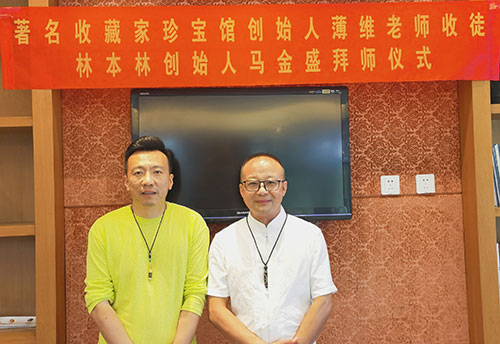 在央视著名鉴定家王荣琳老师,军区首长以及社会各界企业家艺术家的见证下,收藏家薄维老师收马金盛先生为徒弟。