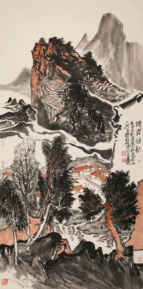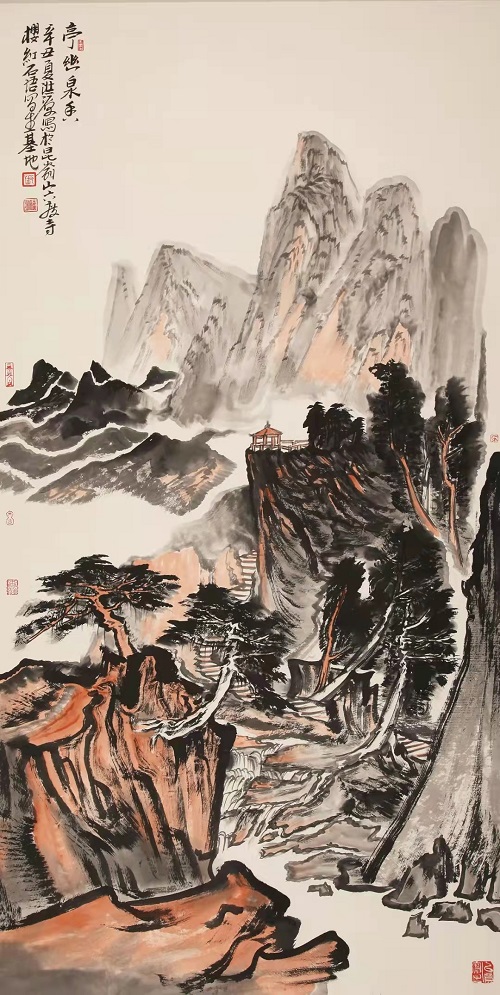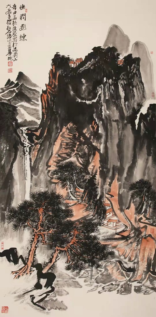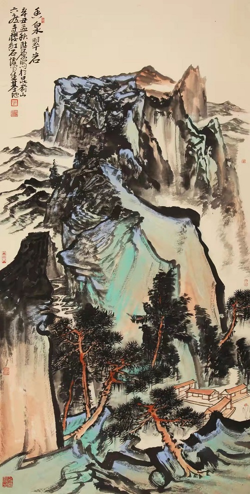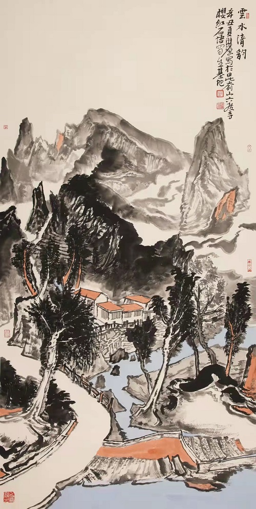 樱红一色染山崖,石语千言涂芳华。走进昆嵛山界石镇六度寺“樱红石语”写生基地,心乐之!此处,山路曲折萦回,高至山峰,低至山谷,蜿蜒崎岖。峰顶俯瞰,群峦叠嶂,丛林密布;小山村,粉墙黛瓦,营布秩序。谷底仰望,千丈立壁,万仞横岩;大铁塔,标建襄峰,直插云端。“写生基地”置于山间村落旁,海拔四百多米,淳朴娴雅,清静无染。石墙瓦屋,即坡岭之体势,自然有序。窗外,烂漫山花簇拥;门前,幽静曲水绵延。这里风景优美,空气新鲜,交通便利。盛幽清秀之茂林,青树翠蔓。潺潺溪水之流音,如鸣珮环。小石桥,磨盘连环,横跨绿岸。格桑花,盛开岸边,美丽无限。此处,四季分明,可游可居。春,满山樱桃,香飘碧空,幽甘盈川;夏,风清气爽,仙风入怀,凉生轩户;秋,红松翠柏,霜皮流雨,黛色参天;冬,北国风光,万物素装,相如丽赋。更有“点灯崮”,古风高雅,智灯渡众,历史悠久。老楸树,新枝良木,壮身老根,清高不语。基地气候别样,即使盛夏晴空烈日,置清阴之处亦是凉爽舒怀。每逢阴雨连绵,泼开空翠,常生致景;远远望去,千峰忽送,云动溪山。崖前飞瀑划开嶂色,界破云围,万木共唱,润含琴调。