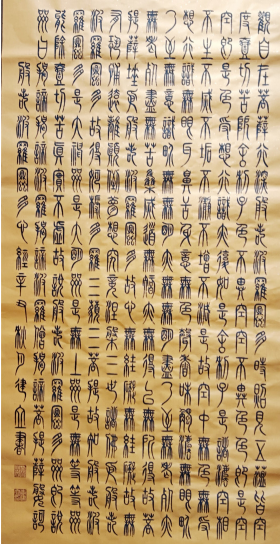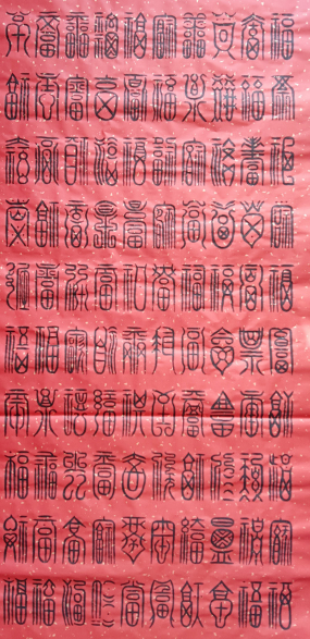 北京军旅书法家李建立现为国家一级美术师,中国书画界联合会会员,中国文化艺术发展促进会榜书艺术研究会会员。作品以小篆为主,代表作品有《大悲咒》,《春江花月夜》,《百福图》,《百寿图》等。