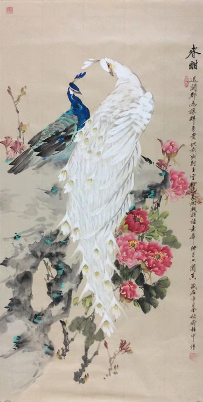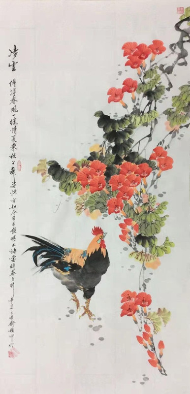 新世纪2000年后,俞桂中老师又广与浙派名家交流,尤其是与先师谪传、中国美协、浙江花鸟画师名家周明明重聚,并得他的悉心指导,如鱼得水,使之作工笔精致经典,写意酣畅淋漓,花鸟的融和富有新意,是奔放与精微的结晶,绚烂与平实的结合,画风更加生机勃发,凝重曲丽,把美置身于生生不息的大自然中。