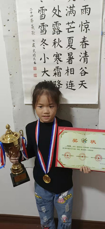 在首届翰林杯创意小画家书画大赛中张纪秦老师的两位学生史靖辰与夏煜菲同学分别喜获少儿组一等奖与二等奖佳绩。