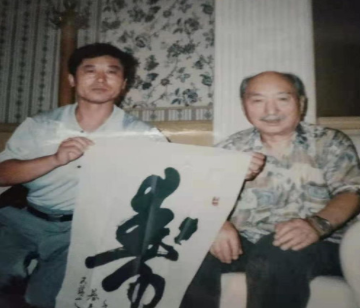 原中国人民解放军文化部部长晨耕将军合影,作曲家乐队指挥家收藏魏建培老师墨宝“鸢飞鱼躍”作品。