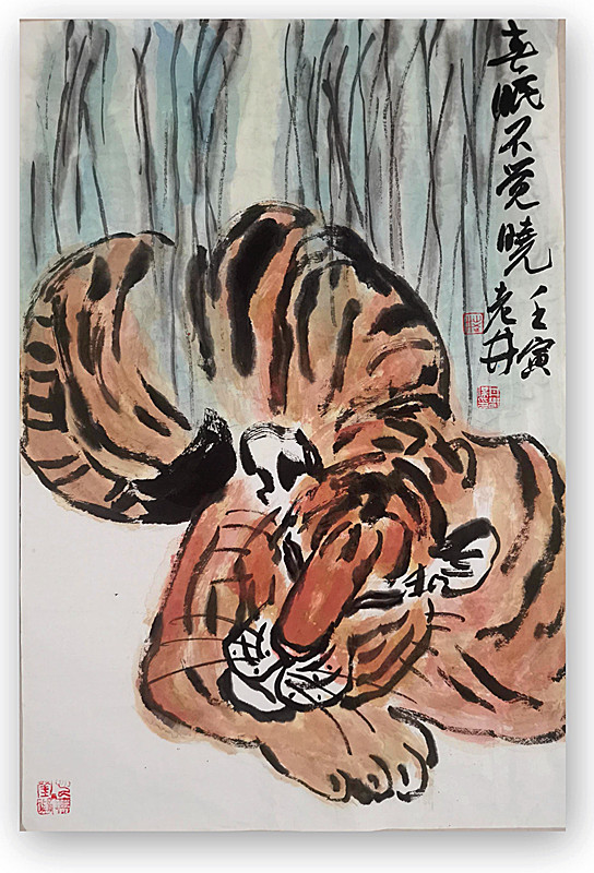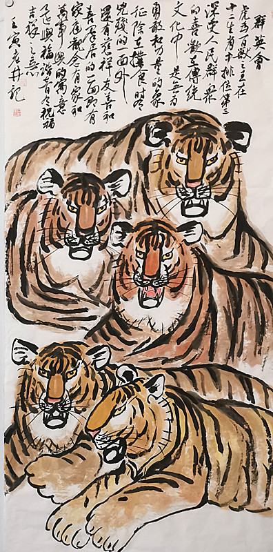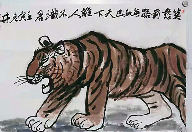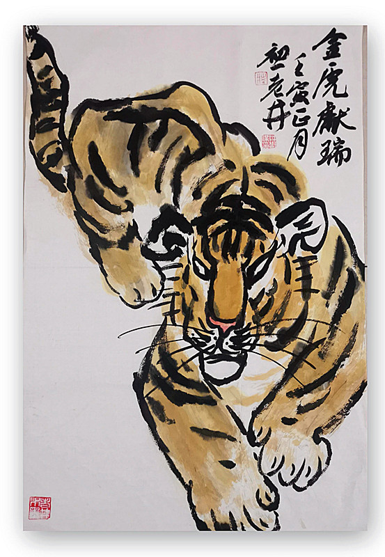 大家知道,2022年,恰逢壬寅虎年。虎,乃百兽之王,在传统文化中虎是勇敢、无畏和力量的象征,深受人民群众的喜爱,更是历代画家笔下乐于表现的题材。在民间流传有虎能镇宅纳福,避除邪气的习俗,人们有在堂屋和中堂悬挂虎画的传统。但是,业界的人都知道,画虎又是非常有难度的,正所谓:“画虎画皮难画骨,画虎不成反类犬。”