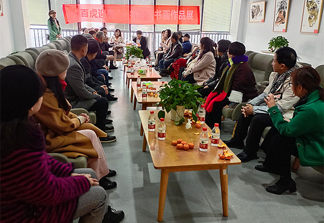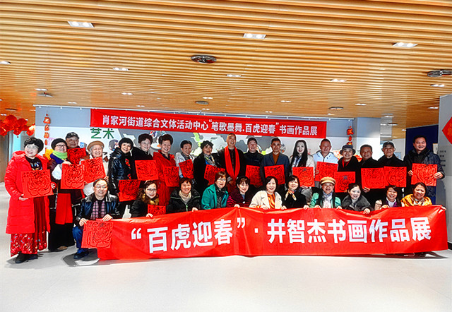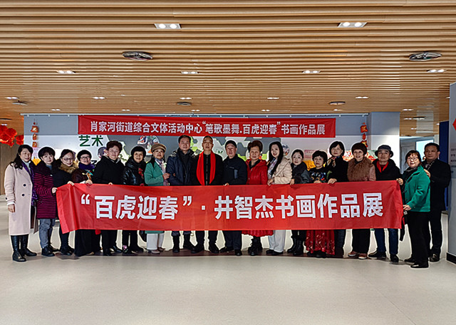 本网四川成都讯(记者刘昕 摄影报道) 锦江涌春潮,福虎报佳音。 虎年伊始,为弘扬中华民族优秀传统文化,营造瑞虎迎春、百福呈祥的欢乐祥和新年新气象,2022年2月15日,“百虎迎春”井智杰书画展在成都市高新区兴蓉街4号肖家河街道综合文体活动中心9楼多功能大厅隆重开幕。本次展览共展出井智杰先生个人书画作品42幅,其中,虎画作品30幅,书法作品9幅,花鸟画作品3幅。