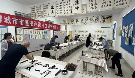山东聊城市直书画家协会:文化进校园,翰墨献给党